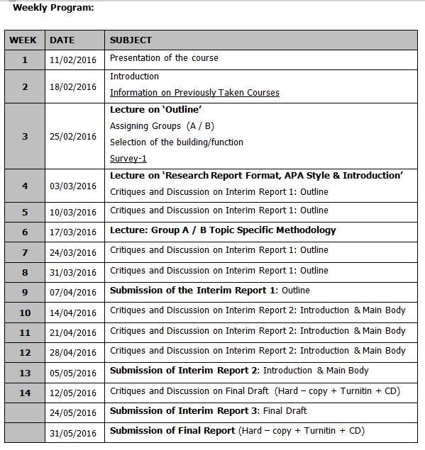 ***SUBMISSION OF FINAL REPORT IS POSTPONED TO 02/06/2016 THURSDAY @ 17:00 ! ! !